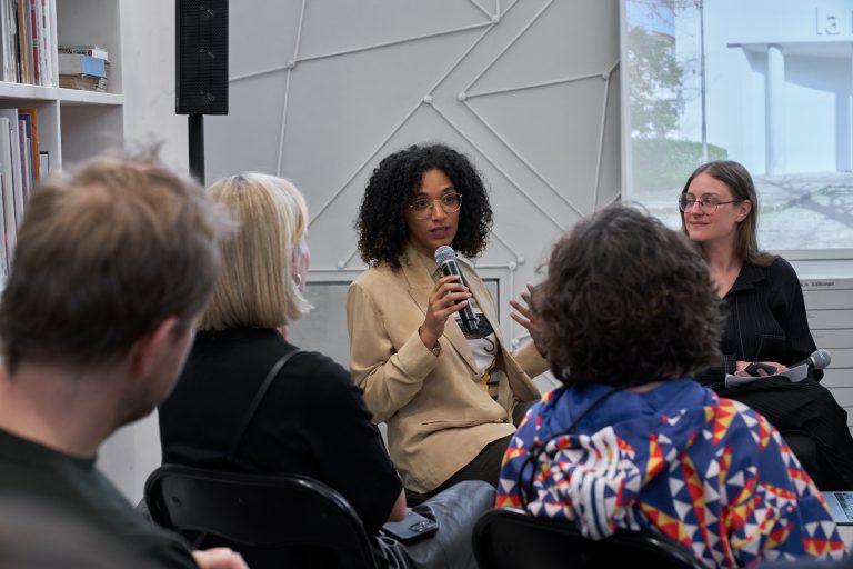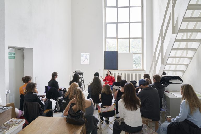 Talk by Gabriela Mureb, Klasse Bircken, Academy of fine arts, Munich, 2023. Photo Malte Wandel