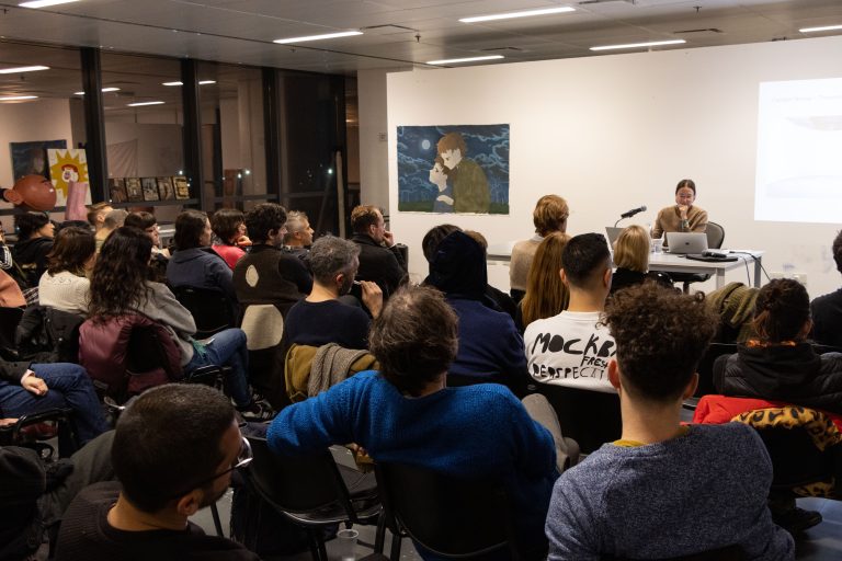 Gala Berger's talk at the Academy of Fine Arts, Munich. Photo: Malte Wandel